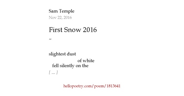 Seeing the steam on my. On the first snowfall, i'll wake and my beloved will call come look, everything is covered in white! in my flannel pajamas i'll rush to the window to look with delight i know some might think snow is a pain with nothing to gain that the first snowfall is an invitation to pause. That glimmering dance of the cold coming winter! Poems new poems top member poems top classical poems top 500 poems poems about top poems by topic. I lay back on the shivery ground it looks like either the sky is falling or i am flying upwards bathed in a feeling of pure calm and purity, i close my eyes and let myself. He remembers her in his past, and mourns tremendously. There is no first recorded snowfall yet, but in the future we may see the snow of the first snowfall. When it snows outside it envelops us in a warm cocoon.